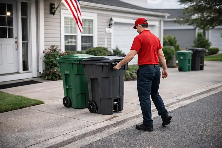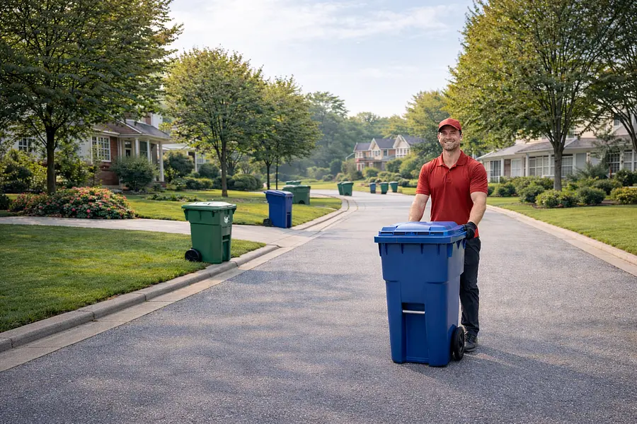 Effortless curbside trash bin rolling and valet services for your home.
